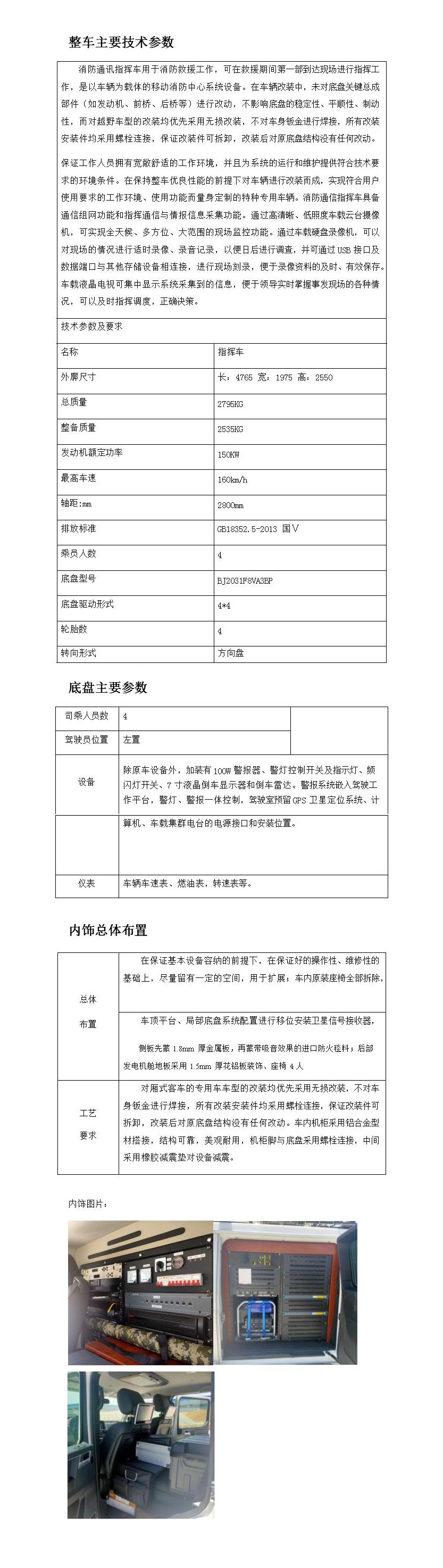在通信指挥车项目,公司从用户和社会的根本利益出发,长期致力干包括消防指挥、防指择、通讯指挥、应急通信等专用车辆的研制和生产售卖**销售。一般多由轿车、轻型越野车或小型客车改装。使用这种车可以方便消防指挥,及时进行消防工作,避免事故的进一步扩展,是消防必备的车辆。