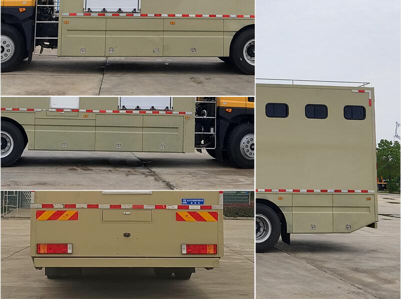 | 该车主要用于野外淋浴保障功能,专用装置:冷热水供给系统、淋浴装置; 厢体顶部封闭, 不可开启; 整车长/轴距/前悬/后悬对应关系为(mm):9550/5600/1250(1410)/2700(2540),8900/5100/1250(1410)/2550(2390),8550(8350)/4700(4500)/1250(1410)/2600(2440); 侧防护装置为裙边结构代替,后防护材质为Q235,焊接连接,截面尺寸宽×高(mm):60×120,下边缘离地高475mm; ABS型号:3631010-C2000,J ABS;ABS生产企业:东科克诺尔商用车制动系统(十堰)有限公司,焦作博瑞克**技术有限公司; 随底盘选装驾驶室. |