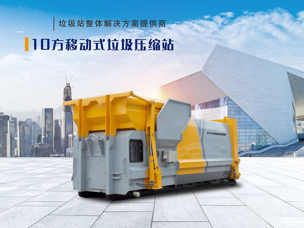 翻斗型移动式垃圾压缩站由压缩腔,装载箱体、后门、翻转斗、液压系统和电气系统等组成。适应城市、乡镇区域垃圾转运站点垃圾量集中的情况下使用,适用的前端收集工具有:中小型收集车、电动三轮车等。移动式垃圾压缩机采用水平压缩技术,将松散垃圾压缩、税水、减容后通过车厢可卸式垃圾车进行转运。该模式布局紧凑占地面积小,操作简便可靠、机动灵活、适应性强,极大提高了转运效率、改善了转运站环境,节约运营成本。设备自动化程度高,极大减轻了工人的劳动强度。