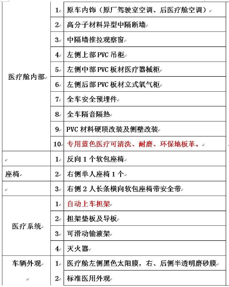 运输型配置清单