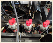 电磁阀组:电磁阀组是车辆液压系统的核心部件,**整车液压驱动,双向操作按钮,包括扫盘升降、吸盘升降、垃圾箱举升、后门开闭等一系列机械操作,随车配备的有电磁阀**盒罩,有效避免灰尘及垃圾物进入盒内。